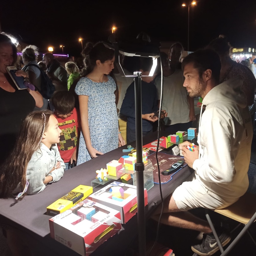 Retrouvez le stand du 1er juillet au 31 août tous les matins sur le marché de Saint-Pierre-la-Mer, et tous les soirs sur le marché de Narbonne-Plage. Démonstration, initiation, et vente de speedcubes haut de gamme.